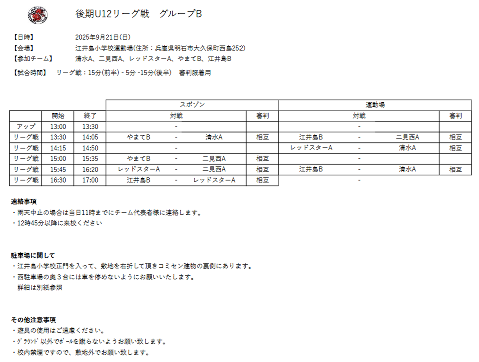 稲美ミニサッカー大会のお知らせ(9/23(火・祝):U9、U10、U12)